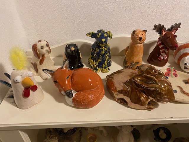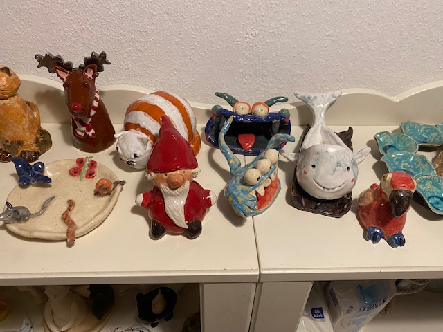 Die Werke werden gleich mit Engobe-Farben bemalt, d.h. es ist kein weiterer Glasurtermin nötig.