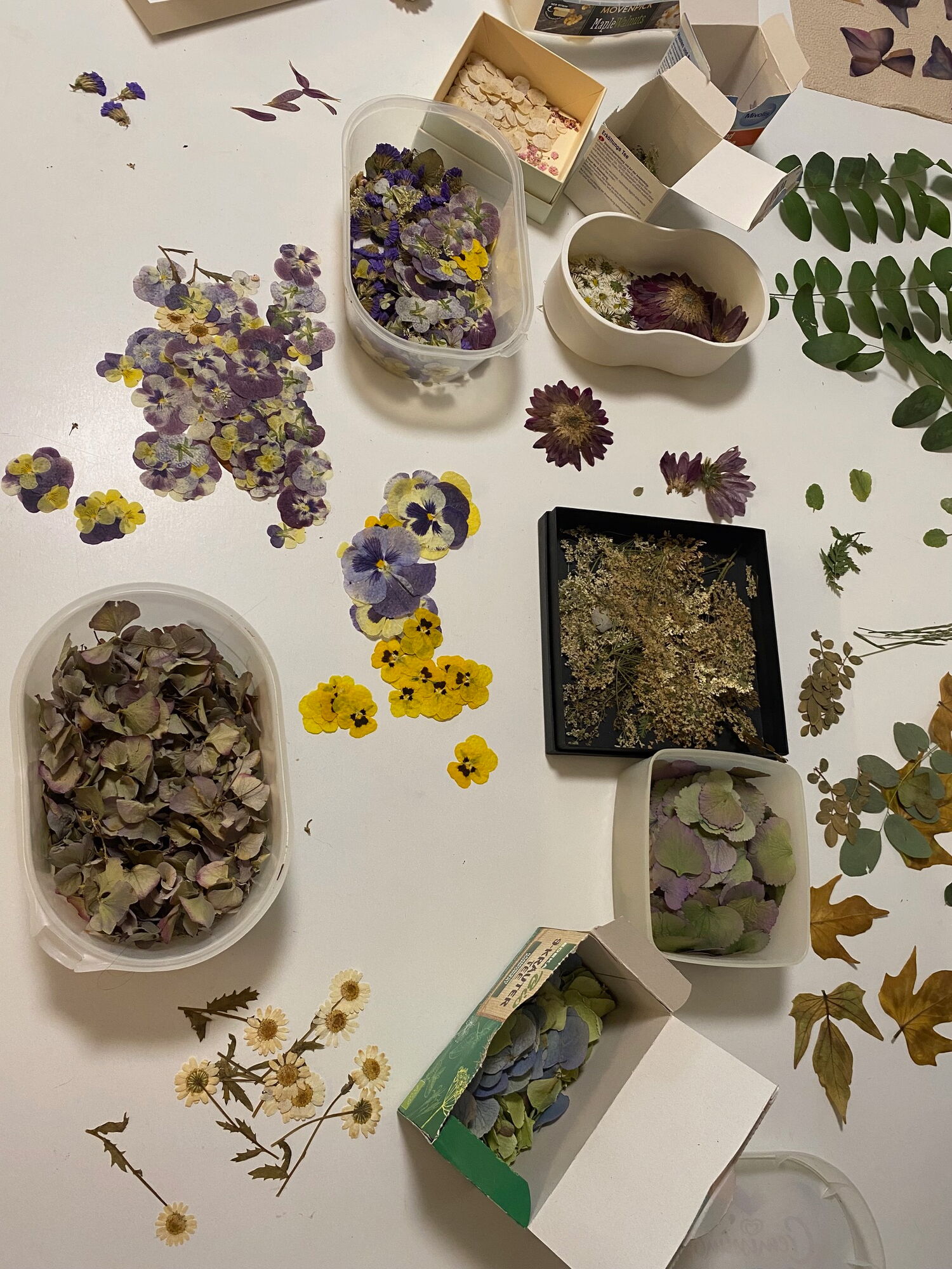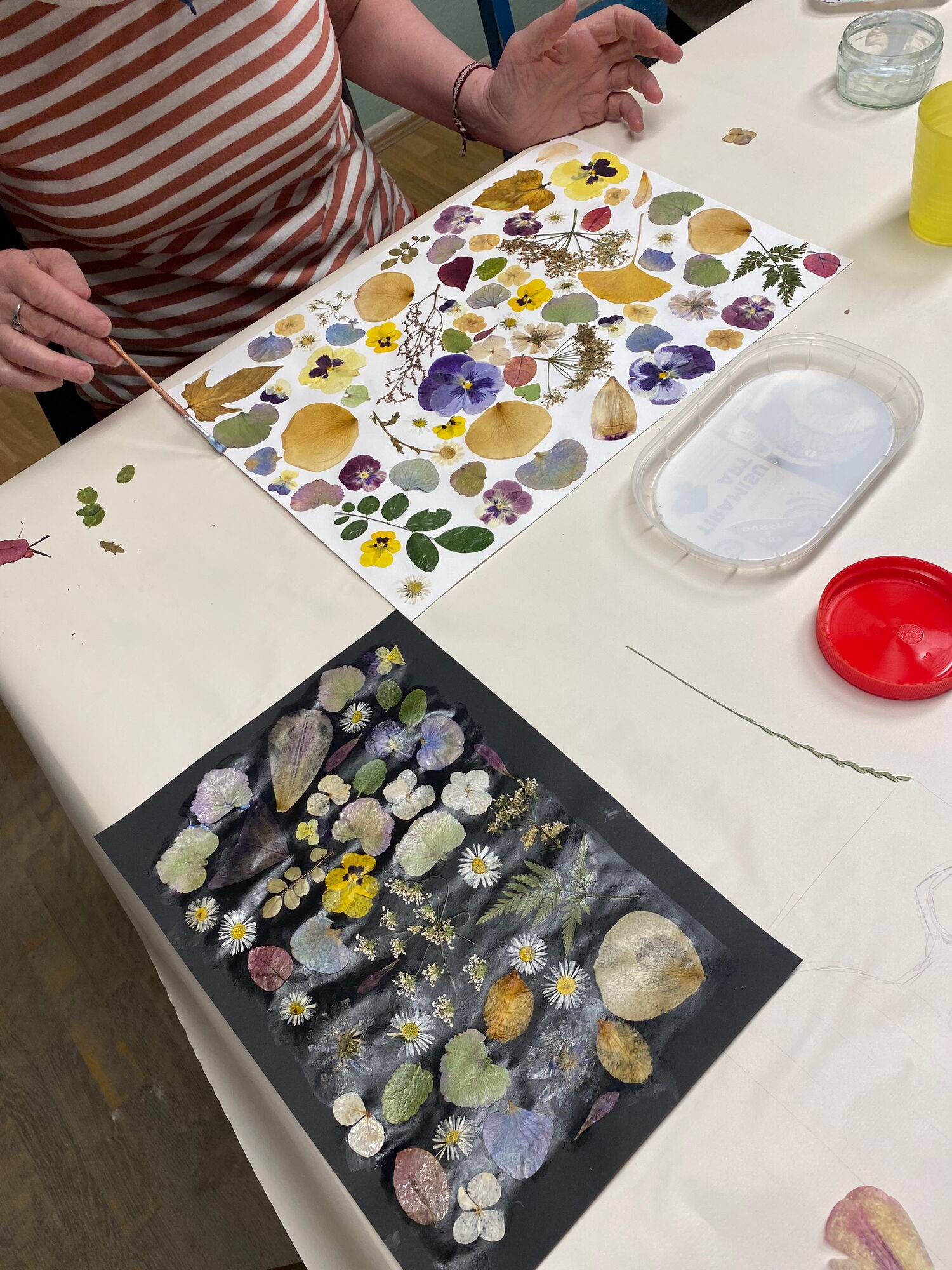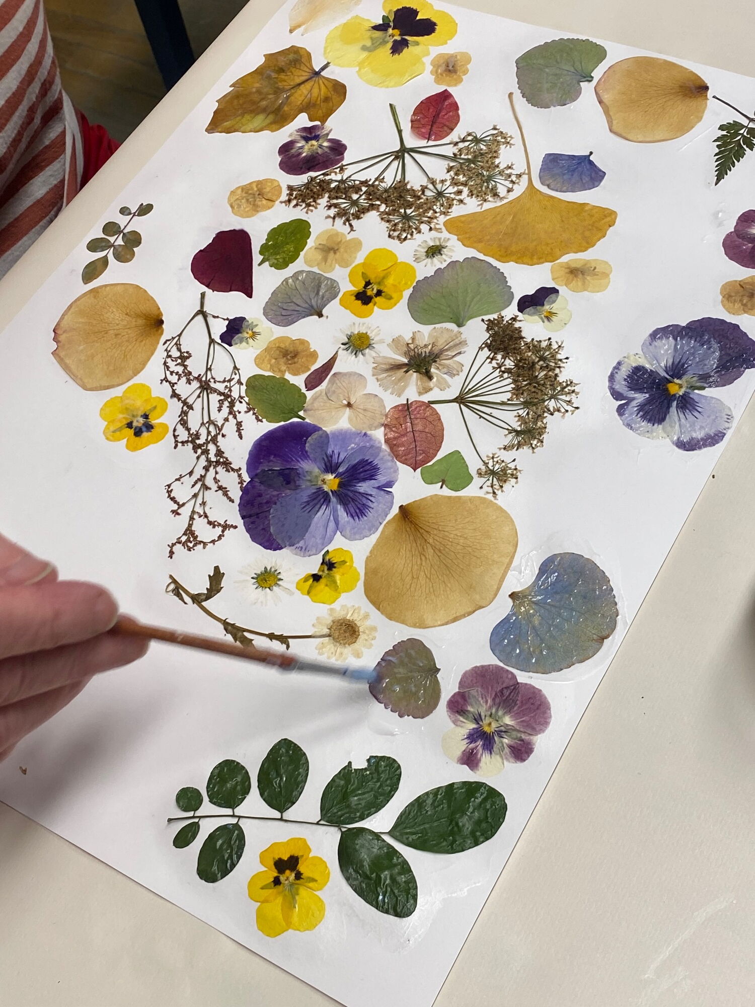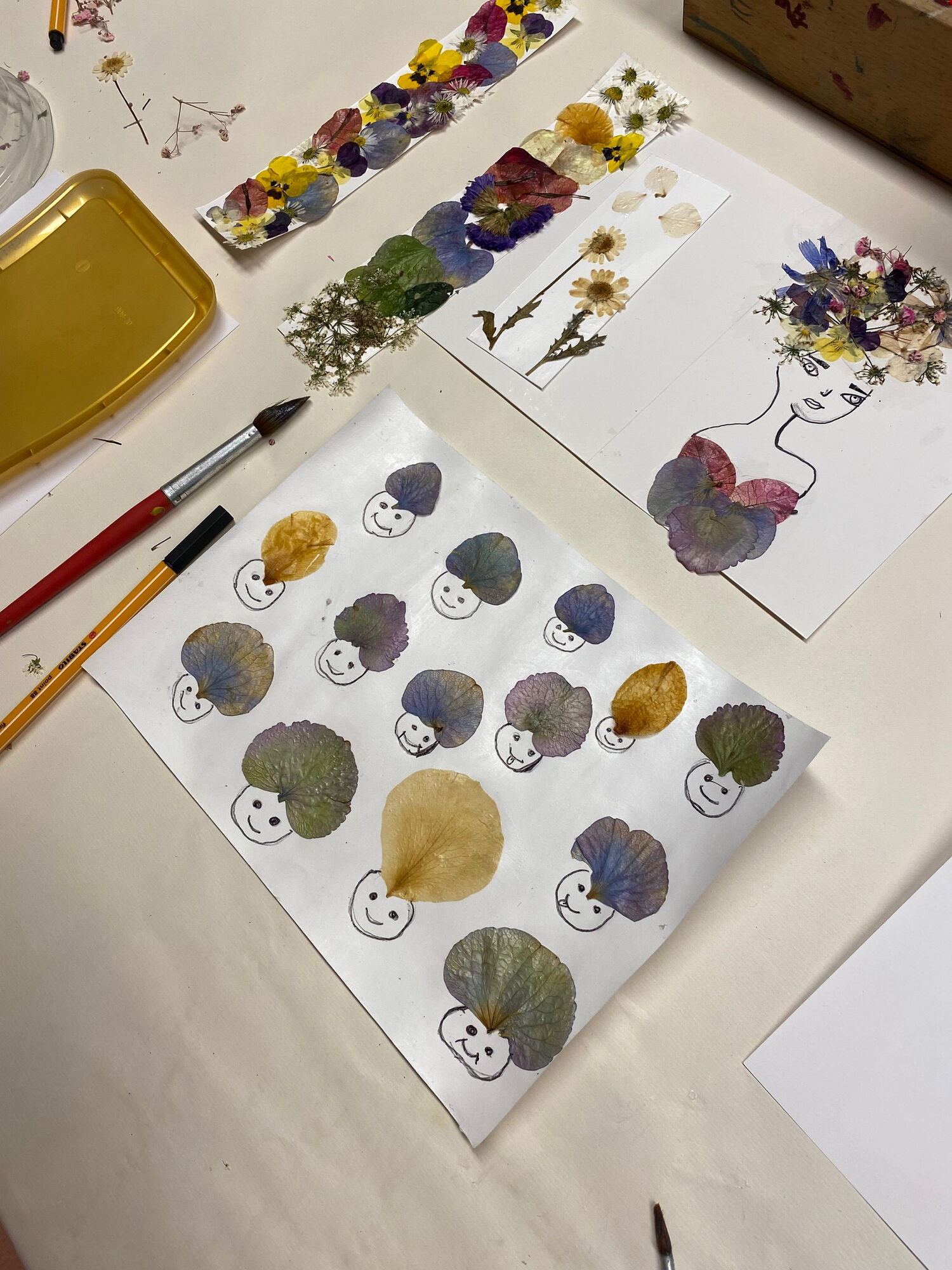 Im Kurs entsteht ein Bild, das eine Kombination aus Zeichnung und collagierten echten getrockneten Blüten ist. Wir fertigen eine Zeichnung an (z.B. von einem Kopf) und kleben aus unzähligen getrockneten Blüten beispielsweise die Frisur oder den Rock. Auch ein Blüten-Mandala ist machbar! Es gibt dabei kein richtig oder falsch .. der Fantasie sind keine Grenzen gesetzt.