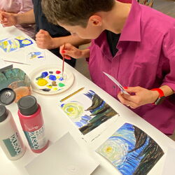 Ausgangspunkt ist immer ein Kunstdruck, z.B. "Die Sternennacht" von Vincent van Gogh.